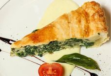Спагетти с обжаренной грудинкой, соусом "Песто" и томатами