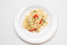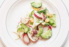 Салат из пасты с огурцом, сыром Фета и жареным миндалем