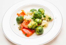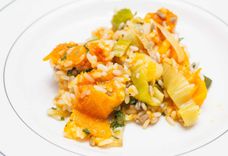 Салат из печеной тыквы с луком пореем, рисом и семенами подсолнечника